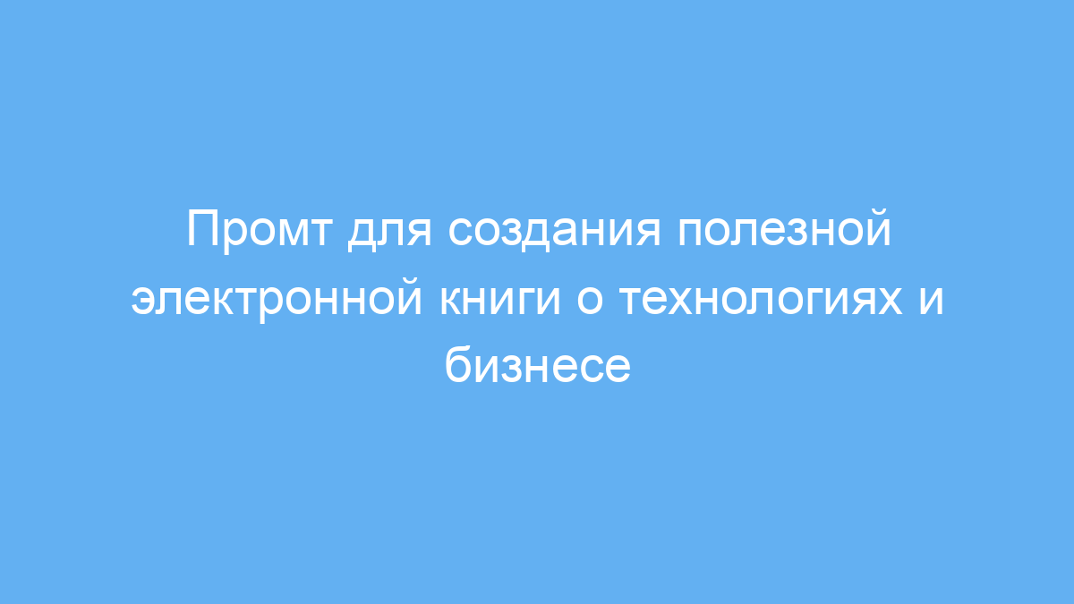 Данный промт предназначен для профессиональных писателей, блогеров и преподавателей, которые хотят создавать информативные и мотивационные тексты в сфере технологий и бизнеса. Особенно он пригодится тем, кто помогает предпринимателям использовать современные технологии для роста бизнеса и увеличения дохода.