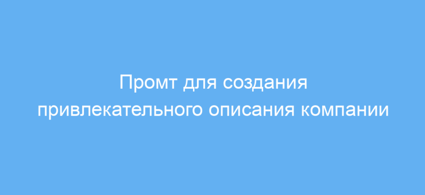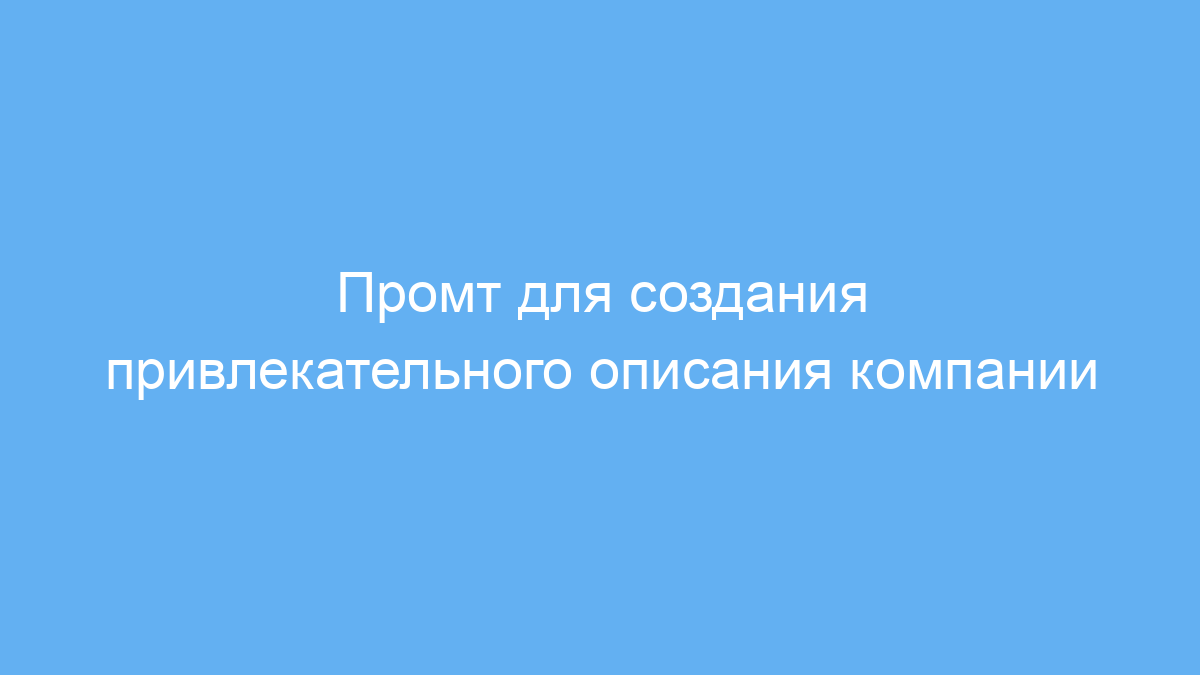Использование данного промта существенно упрощает и ускоряет процесс создания качественного описания компании. Он помогает сформулировать сильное позиционирование бренда без необходимости долгих раздумий и многократных правок, тем самым экономя время и силы.