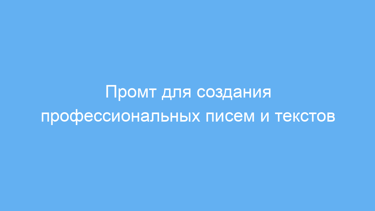 Этот промт предназначен для тех, кто хочет быстро и качественно получить уникальный текст или письмо. Он отлично подходит для копирайтеров, маркетологов, менеджеров и всех, кому нужно написать содержательный и грамотно оформленный текст без лишних усилий.