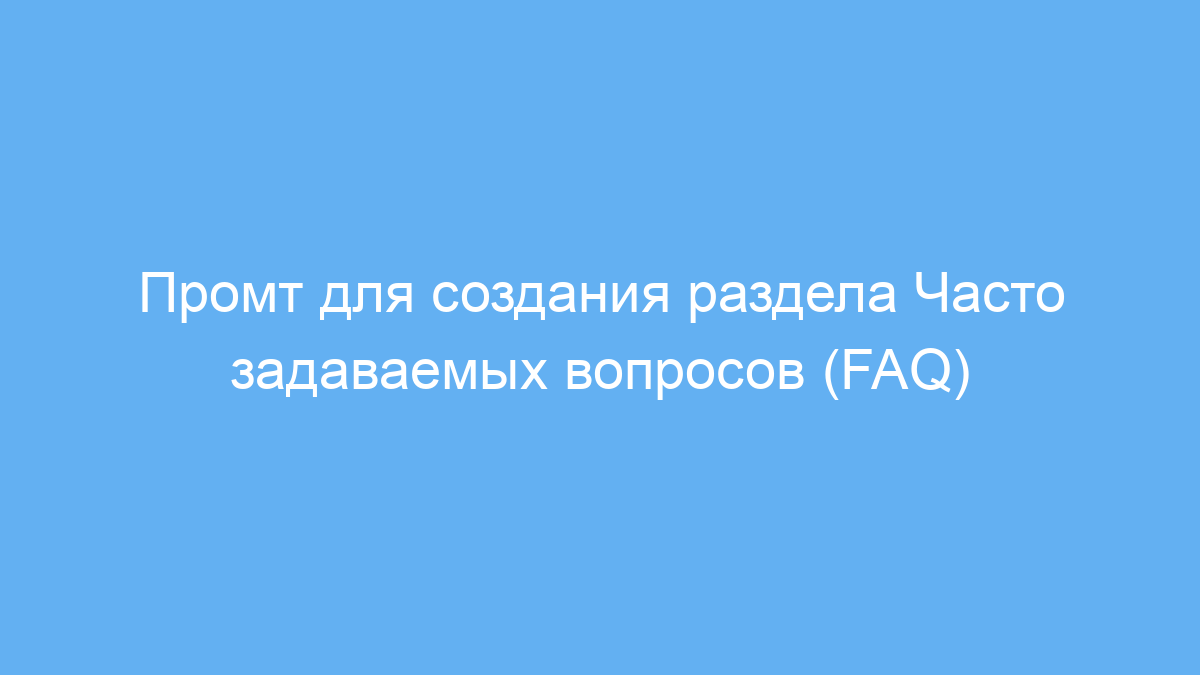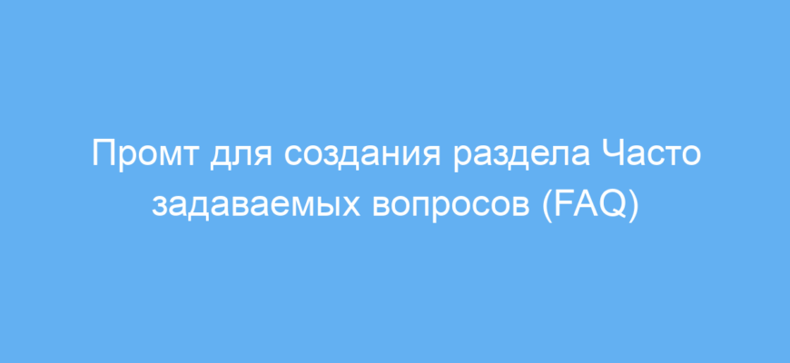 Этот промт помогает быстро и удобно создать информативный и структурированный раздел FAQ для вашего продукта или услуги. Он экономит время, упрощает работу с клиентами и служит хорошим помощником в построении доверия к вашему бизнесу.