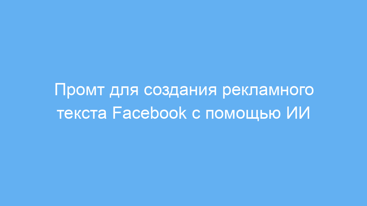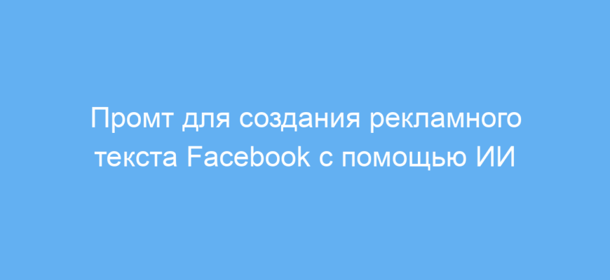 Этот промт заметно ускоряет процесс создания эффективных рекламных объявлений для Facebook, помогая создавать персонализированные тексты с призывом к действию и интересными эмодзи. Использовать его удобно, а результат легко адаптируется под различные сферы и товары.