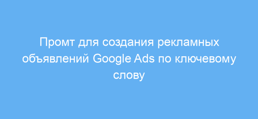 Промт работает следующим образом: вы передаёте в него ключевое слово, связанное с вашей тематикой или продуктом, а нейросеть генерирует пять различных объявлений, которые можно использовать или адаптировать для рекламной кампании в Google Ads. Это упрощает процесс подготовки рекламных материалов и помогает быстро создавать варианты для тестирования.