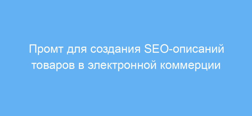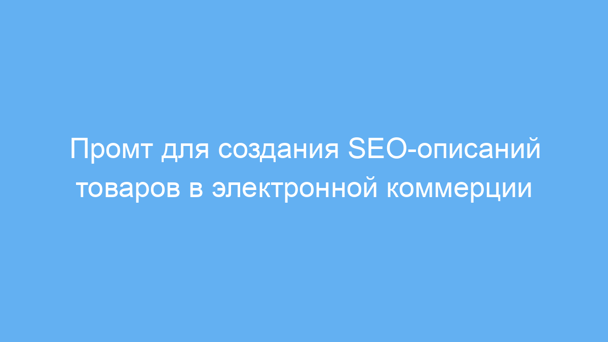 Использование этого промта значительно ускоряет создание качественных и SEO-оптимизированных описаний товаров для интернет-магазинов. Это помогает повысить продажи за счёт привлечения и удержания внимания покупателей, экономит время специалистов и обеспечивает структурированный и многокомпонентный текст с правильным подбором ключевых слов.
