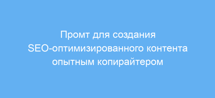 Используя данный промт, нейросеть выступает в роли опытного копирайтера с многолетним стажем, способного структурировать исходные данные, оптимизировать контент под ключевые запросы и сделать тексты максимально понятными и вовлекающими. Это освобождает вас от необходимости самостоятельно думать о SEO и стилистике, позволяя получить сразу готовый и адаптированный текст.