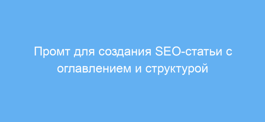 ✅ Пример: <h1>Промт для создания SEO-статьи с оглавлением и структурой</h1><p>Подробный SEO-текст актуален сегодня как никогда. Используя правильно подобранные ключевые слова и логичные заголовки, вы улучшите рейтинг сайта и привлечёте больше аудитории. Наш промт поможет сгенерировать такой текст быстро и качественно…</p>