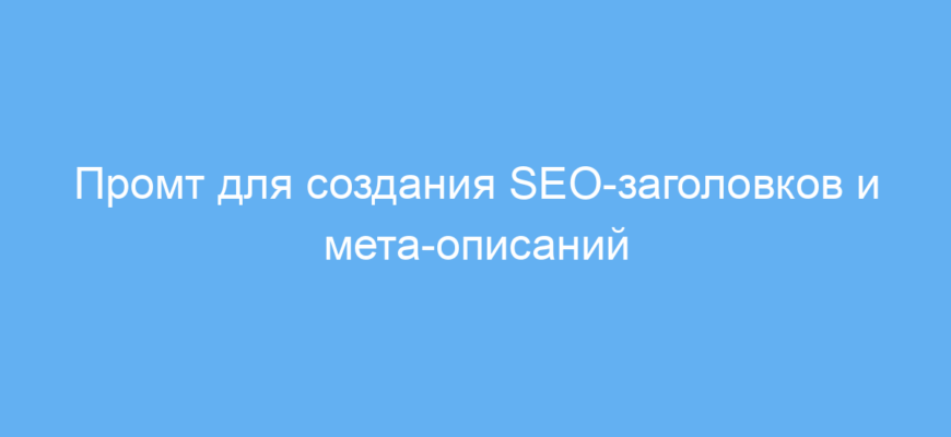Использование промта помогает экономить время и силы при подготовке контента, а также обеспечивает более высокий CTR (кликабельность) за счет четко структурированных и целевых метаданных. Благодаря этому страницы вашего сайта смогут лучше ранжироваться в поисковых системах и привлекать больше посетителей.