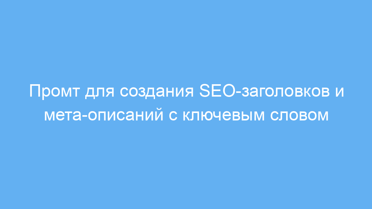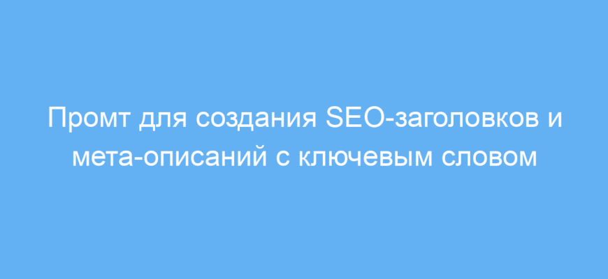 Промт решает задачу правильного выделения ключевого слова в заголовке и описании, формирует короткий и информативный текст, стимулирующий пользователей перейти на страницу. Он помогает избежать распространённых ошибок — излишней длины, неучёта ключевых слов или неинтересного описания.