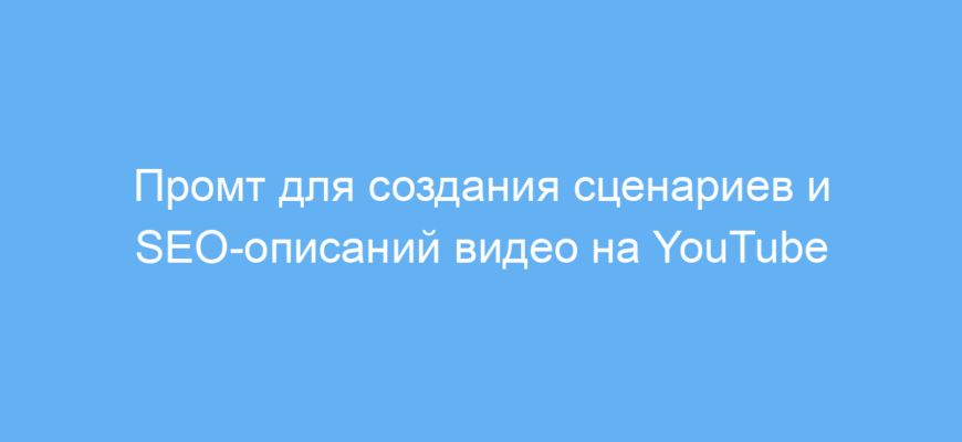 Использование этого промта позволяет экономить время и силы при подготовке качественного видеоконтента. Он помогает структурировать информацию, сделать сценарий увлекательным и SEO-оптимизированным, а также продумывать визуальный ряд для повышения вовлечённости зрителей.
