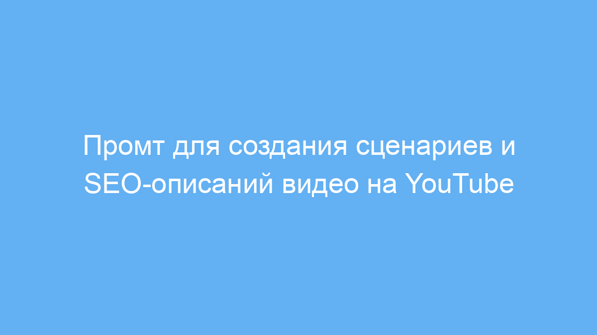 Для работы с промтом достаточно заменить в квадратных скобках [тема и контекст] на актуальную тему и подробности вашего видео. Чем точнее и конкретнее будет описание, тем качественнее выйдет сценарий и подбор заголовков.