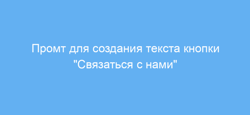 Данный промт предназначен для владельцев сайтов и маркетологов, которые хотят улучшить взаимодействие с посетителями через кнопку «Связаться с нами». Его задача — предложить привлекательные и емкие варианты текста для кнопки, которые как раз отражают преимущество и результат работы с компанией.