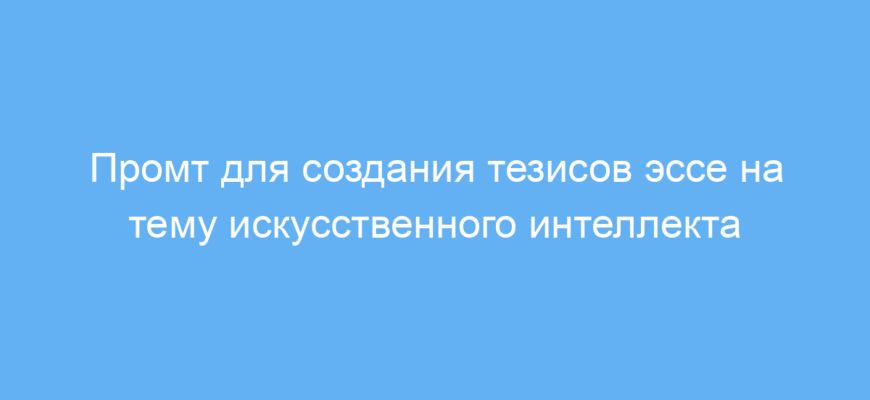 Использование этого промта позволяет значительно экономить время и силы на подготовку хорошо структурированных и интересных тезисов для эссе или иных творческих материалов. Он помогает быстро получить качественный фундамент для дальнейшей работы и избежать «блока писателя».