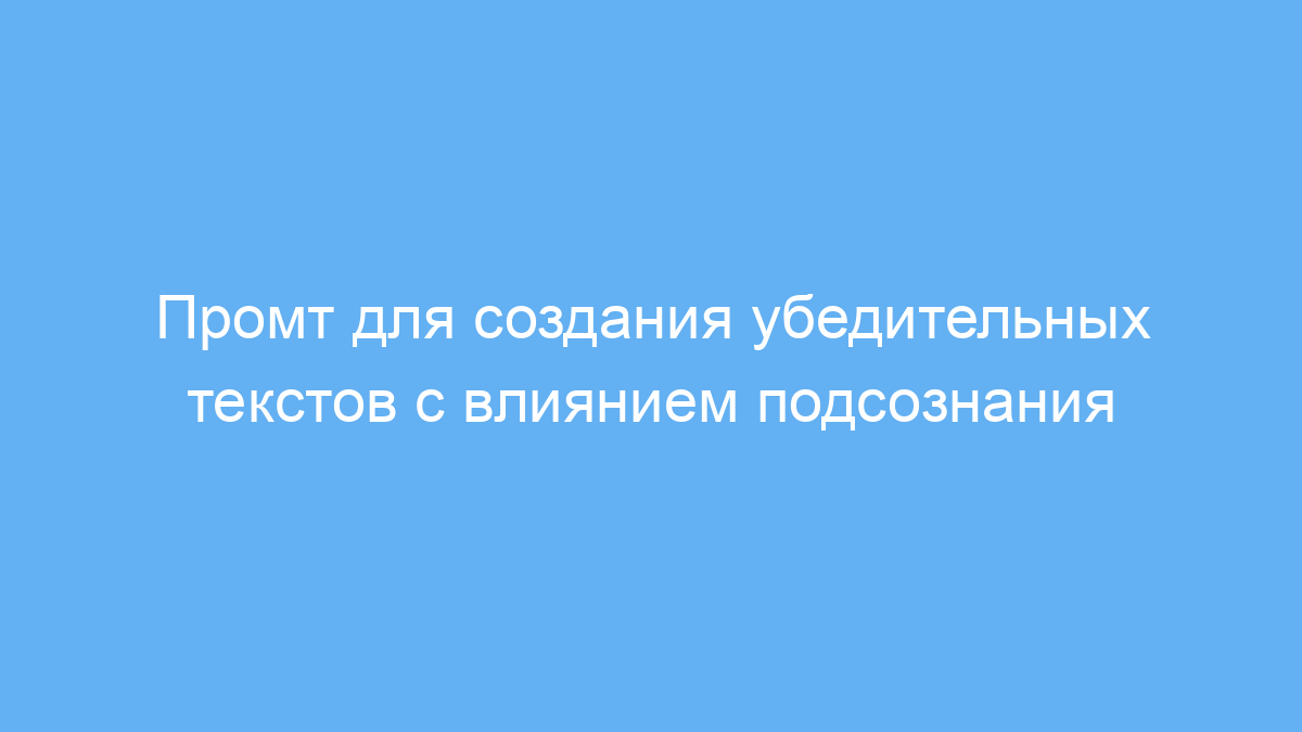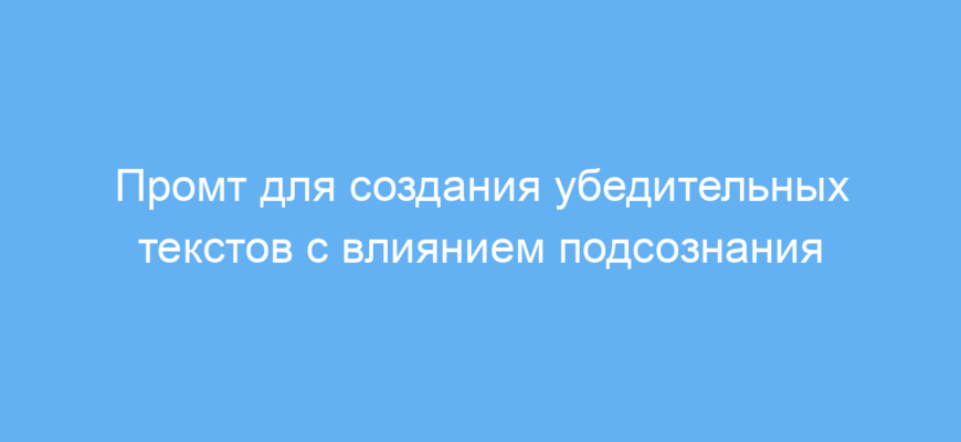Основное преимущество этого промта — возможность создавать убедительные, структурированные тексты, которые затрагивают подсознательные мотивы аудитории и тем самым увеличивают конверсии. Вы экономите время на формулировке стратегии и подборе убедительных формулировок, получая тексты, которые действительно работают на продажи и доверие потребителей.