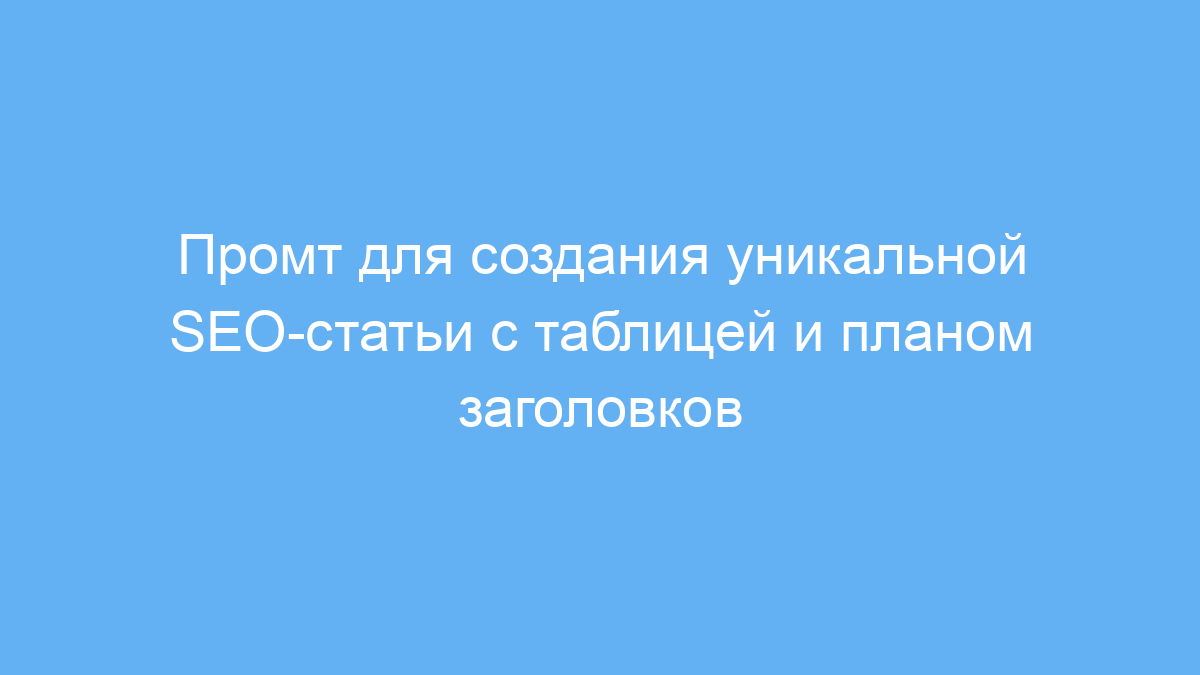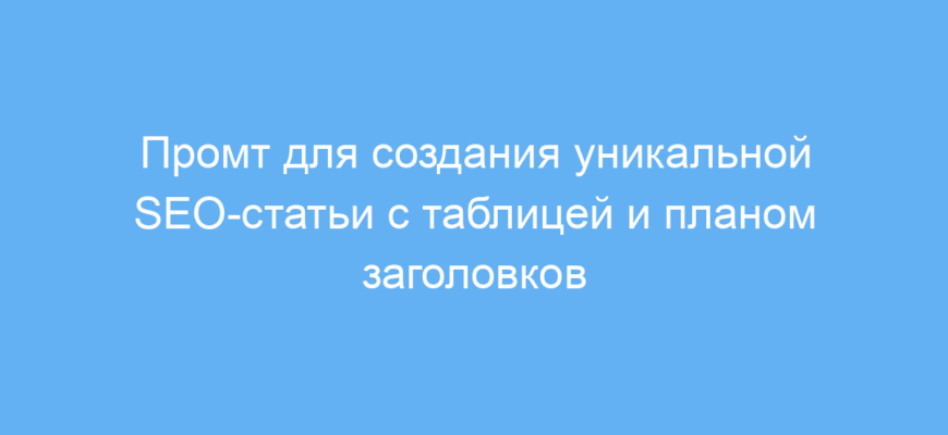 Main benefit: Быстрое создание структурированной и уникальной SEO-статьи с подробным планом и таблицами, готовой к публикации.