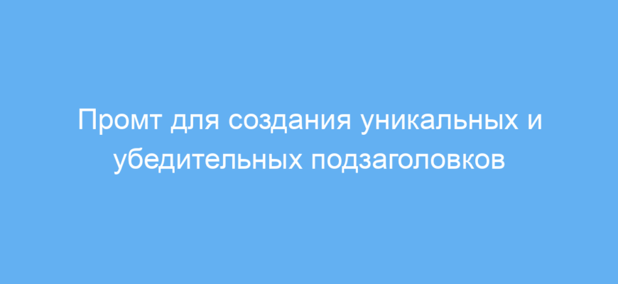 Этот промт экономит ваше время и силы при создании подробных и интересных руководств. Он гарантирует оригинальность подзаголовков и помогает структурировать материал так, чтобы он выделялся среди аналогов.