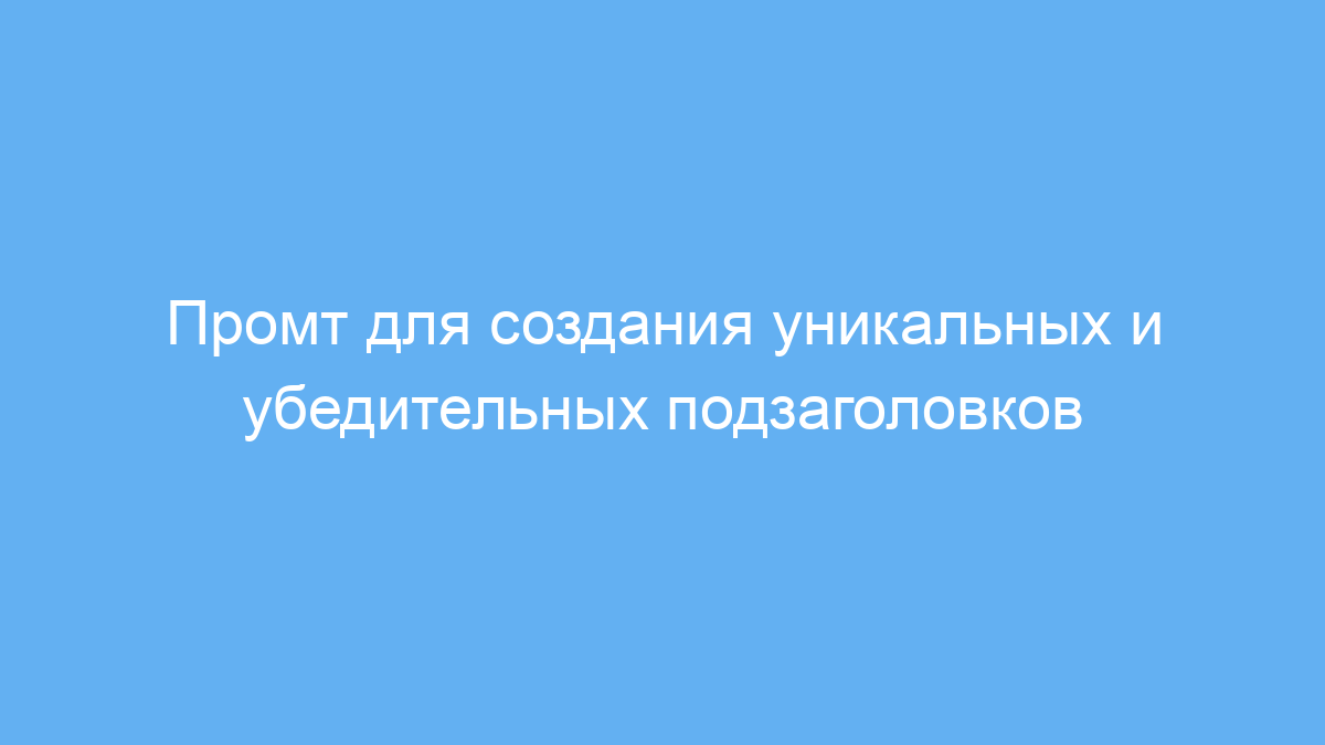 Этот промт предназначен для копирайтеров, маркетологов, преподавателей и всех, кто занимается подготовкой подробных руководств по разным темам. Он помогает создавать уникальные и цепляющие подзаголовки, которые выделят ваш материал на фоне конкурентов.