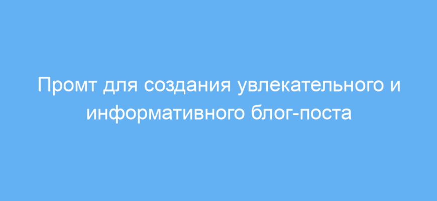Этот промт идеально подходит для тех, кто хочет быстро и качественно получить полноценный блог-пост на любую тему с четкой структурой и привлекательным стилем. Он помогает авторам контента, маркетологам, копирайтерам и преподавателям создавать тексты, которые привлекают внимание читателей и удерживают интерес благодаря содержательному и логичному построению статьи.