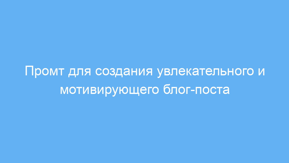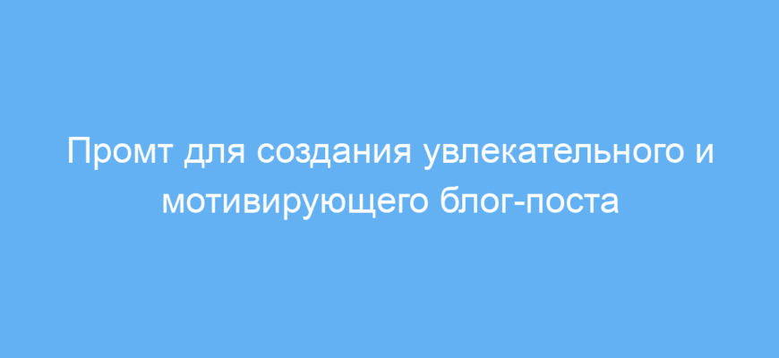 Этот промт незаменим для профессиональных маркетологов, копирайтеров и контент-мейкеров, которые хотят быстро создавать захватывающие и полезные блог-посты. Он помогает структурировать текст, сделать его интересным, информативным и мотивирующим, привлекая внимание читателей и удерживая их внимание на протяжении всего материала.