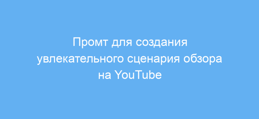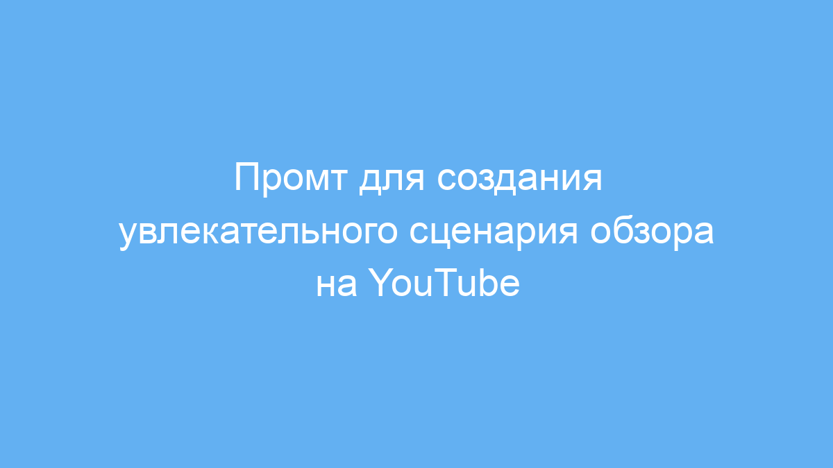 Этот промт предназначен для маркетологов, блогеров, видеомейкеров и всех, кто хочет быстро и качественно создать сценарий обзора для YouTube. Он помогает решать такой важный вопрос, как готовность увлекательно и понятно рассказать о продукте или сайте, чтобы заинтересовать зрителя и вдохновить его на действие. Написание сценария может занимать много времени и сил, а с этим промтом процесс становится гораздо проще и быстрее.