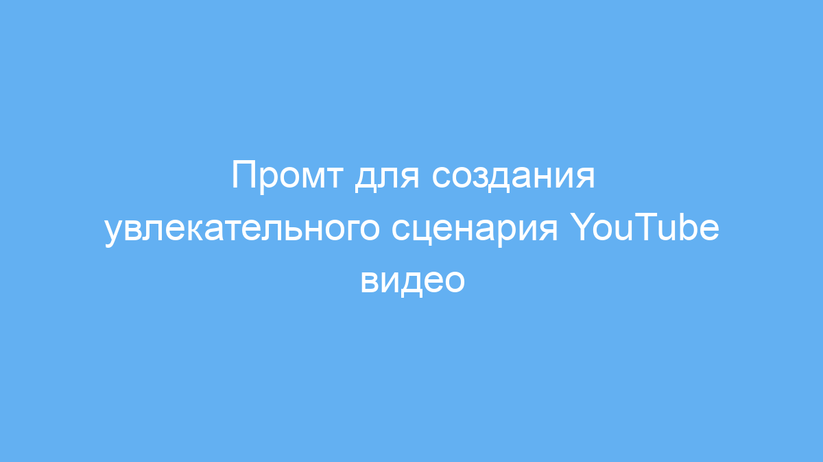 Этот промт ускоряет создание качественных и адаптированных сценариев для YouTube видео. Он помогает избежать творческого застоя, улучшает структуру контента и учитывает предпочтения вашей аудитории. В итоге вы экономите время и человекочасы при подготовке роликов, получая более интересный материал.
