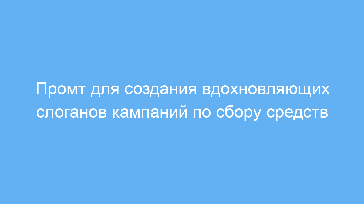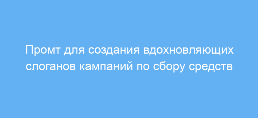 Главная задача промта – сгенерировать короткие и яркие фразы, отражающие суть темы сбора средств и вдохновляющие людей участвовать. Использование такого промта экономит время на поиски креативных идей и упрощает подготовку рекламных материалов или публикаций.