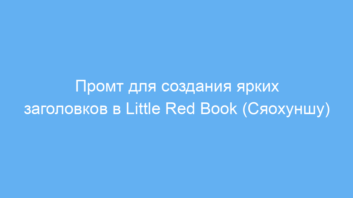 Этот промт предназначен для маркетологов, SMM-специалистов и контент-мейкеров, которые продвигают товары или услуги в китайской социальной сети Little Red Book (Сяохуншу). Он помогает быстро создавать привлекательные заголовки, которые привлекают внимание пользователей и увеличивают вовлечённость.