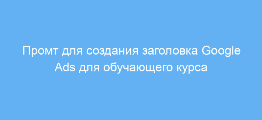Применение данного промта экономит время и силы при создании рекламных заголовков для образовательных курсов. Вы получаете быстрое и понятное решение для привлечения целевой аудитории через Google Ads.