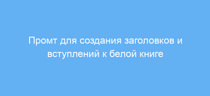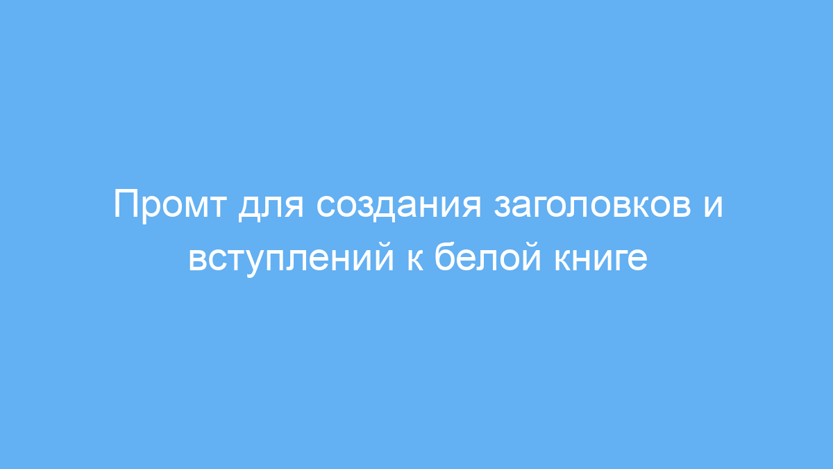 Использование этого промта значительно экономит время и силы на создание первых текстовых элементов белой книги. Он помогает быстро составить привлекательные заголовки и информационные вступления, что важно для вовлечения читателей и повышения качества материалов.
