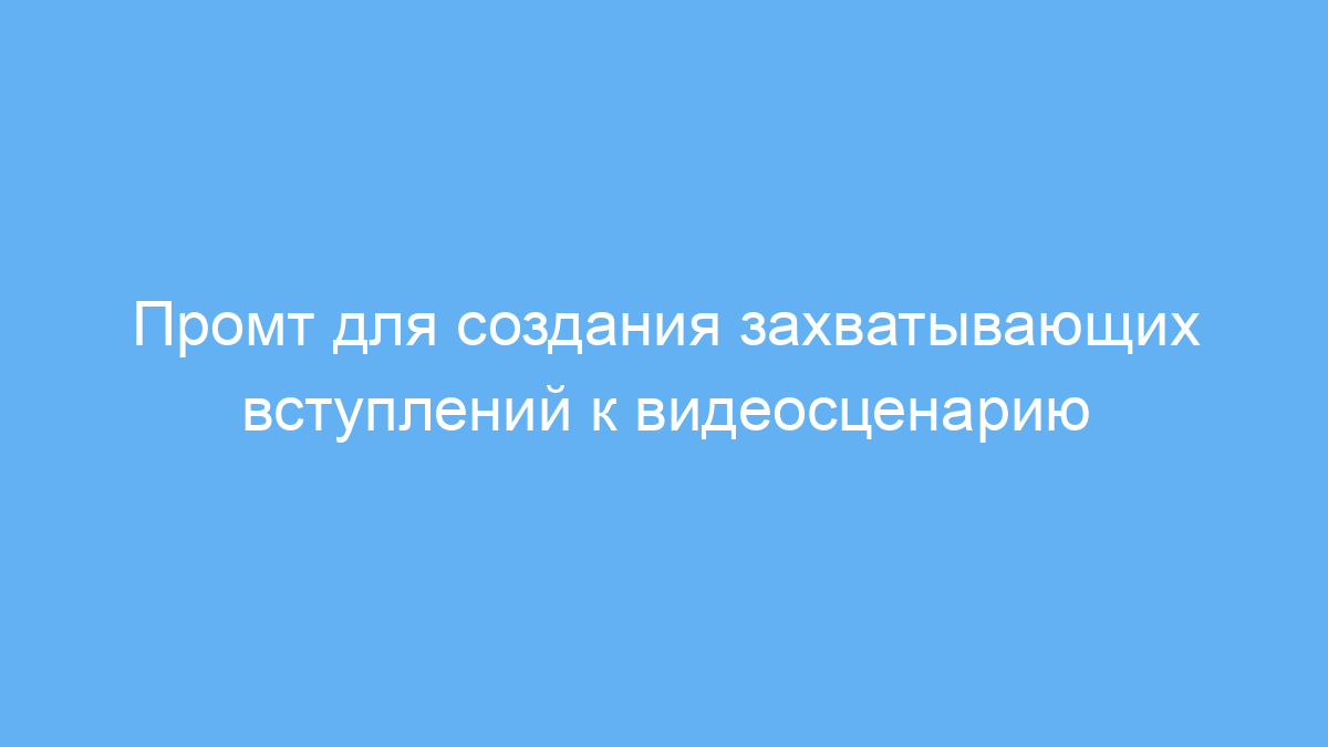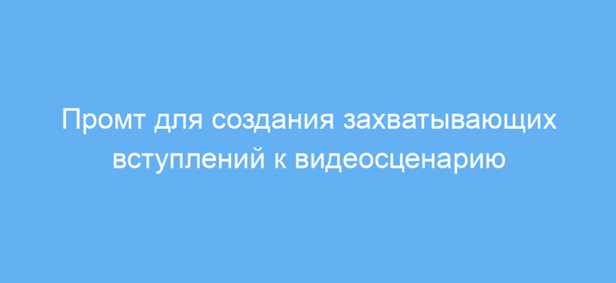 Использование этого промта помогает быстро создавать яркие и цепляющие начала для видео, что экономит время и повышает вовлечённость зрителей. Это особенно полезно тем, кому нужно регулярно создавать видеоконтент и поддерживать интерес аудитории без долгих раздумий над текстом.
