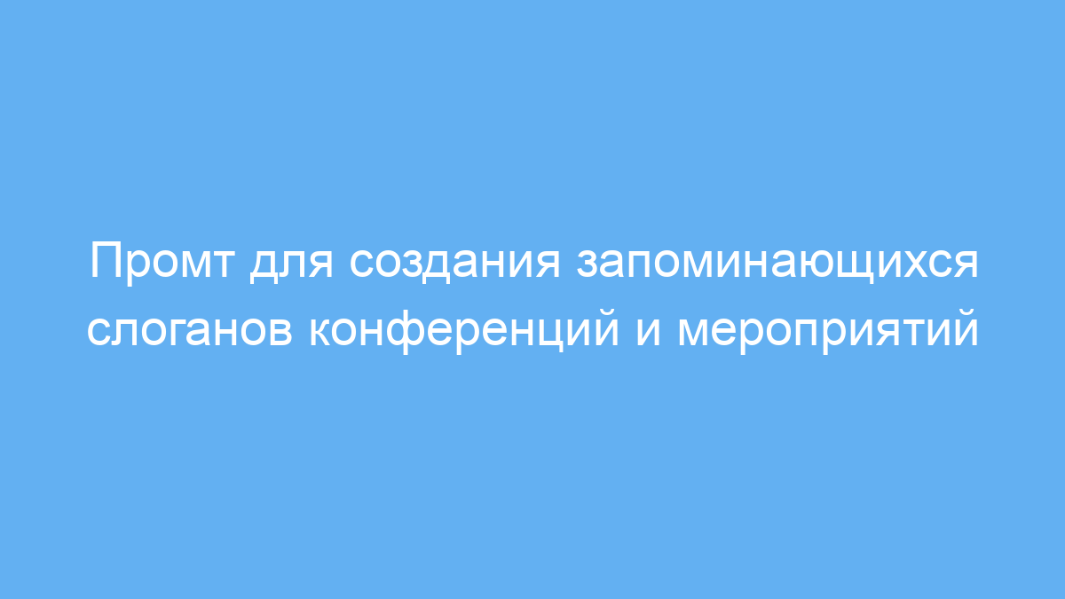 Данный промт существенно упрощает создание креативных и легко запоминающихся слоганов под темы конференций и мероприятий. Это экономит время и помогает быстро получить готовые варианты, которые можно использовать для рекламы и продвижения.