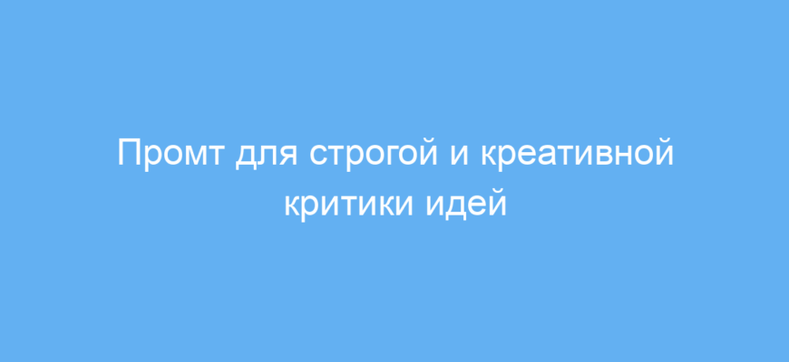 Этот промт будет полезен всем, кто хочет получить конструктивную и нестандартную обратную связь на свои идеи. Особенно он подходит копирайтерам, маркетологам, стартаперам и креативным специалистам, которые стремятся улучшить свои проекты за счёт критики, поданной живо и профессионально.