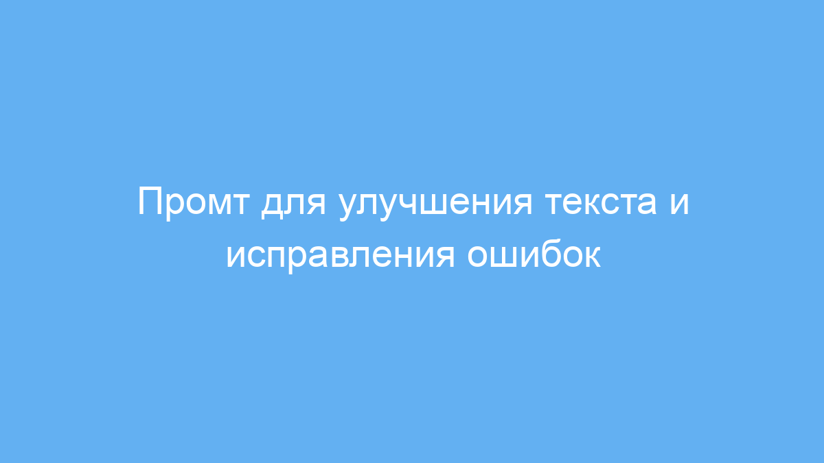 Промт решает сразу две задачи: исправляет грамматические ошибки и улучшает стиль письма. Благодаря этому текст становится более грамотным, плавным и привлекательным для читателей, при этом основная идея сохраняется неизменной.