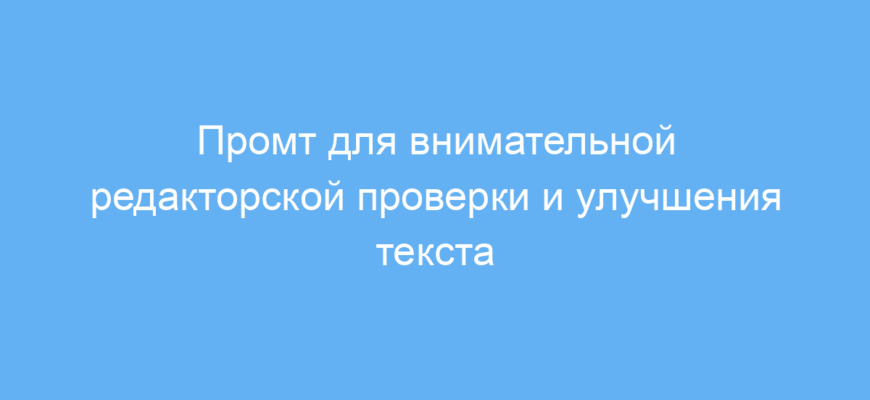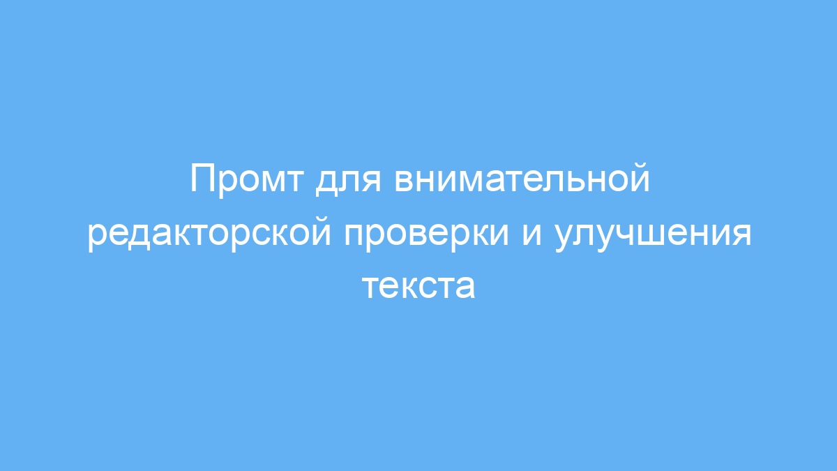Этот промт значительно экономит время при редактуре и улучшает качество текстов любой направленности. Он помогает увидеть слабые места, даёт конкретные рекомендации и позволяет автоматизировать процесс улучшения, сохраняя внимание к целевой аудитории и стилю.