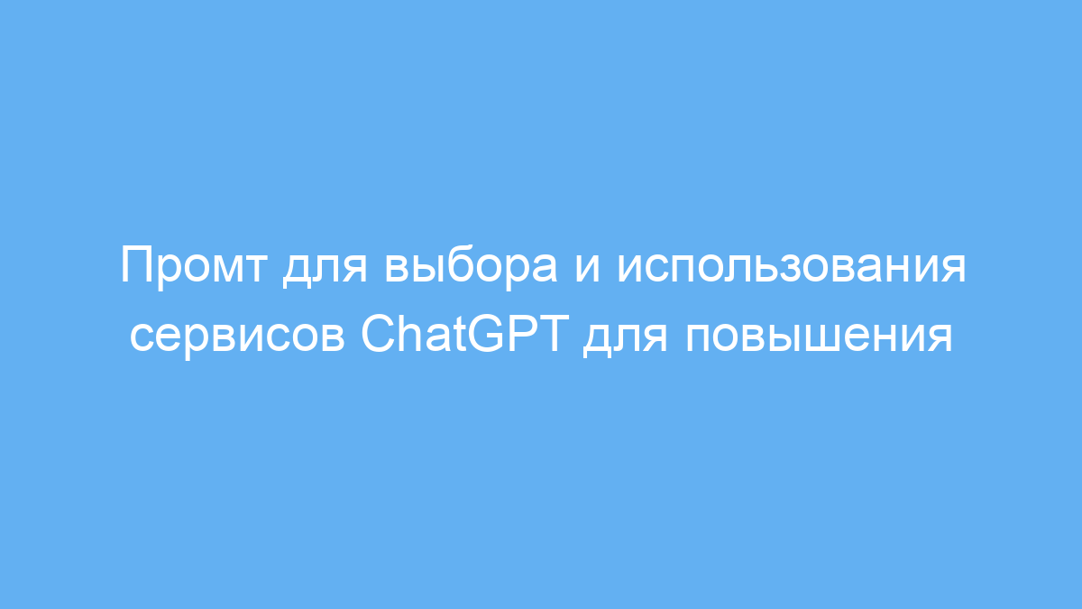 Промт решает проблему выбора подходящего инструмента в рамках одного диалога с ChatGPT. После того как пользователь введет тему или текст, бот покажет перечень доступных сервисов. Пользователь выбирает нужный, и модель сразу генерирует результат, экономя время и упрощая работу с контентом.
