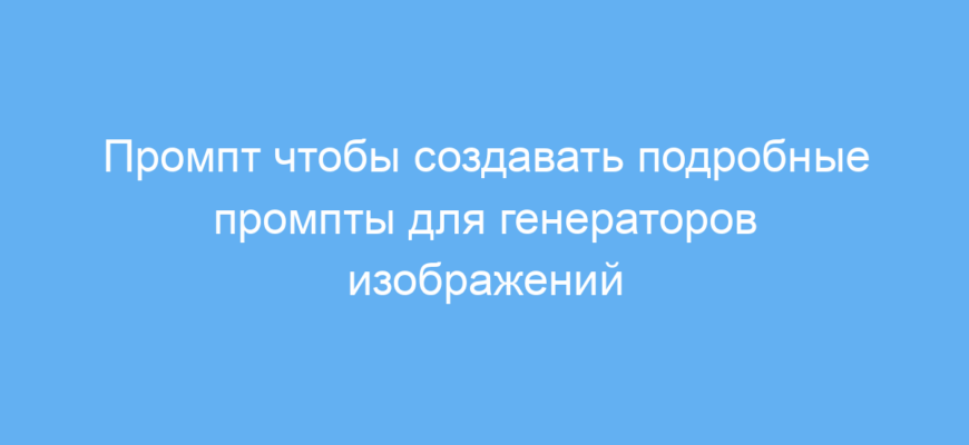 Рекомендуется использовать этот промпт при подготовке запросов к таким генераторам, как Midjourney, Stable Diffusion или DALL·E, где важна точность и креативность описания.