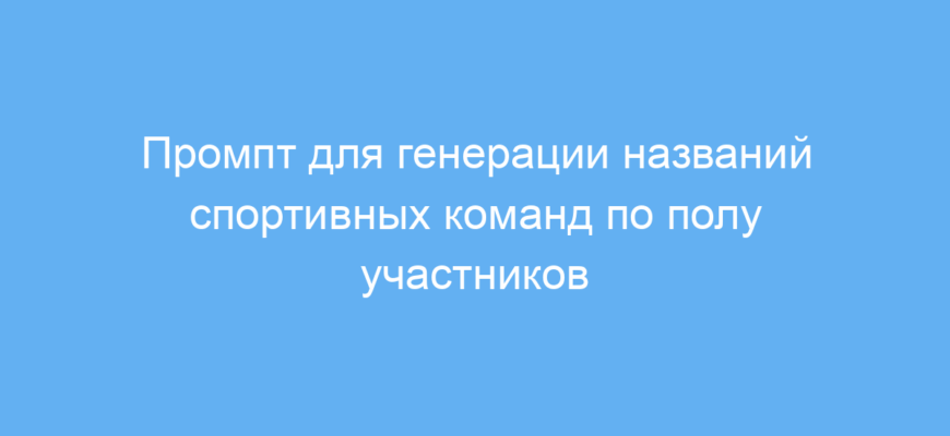 Использование данного промпта значительно экономит время и усилия при подборе названий для команд разного типа и пола. Он помогает быстро получить сильные и мотивирующие идеи, которые легко адаптировать под конкретный спорт или уровень подготовки.