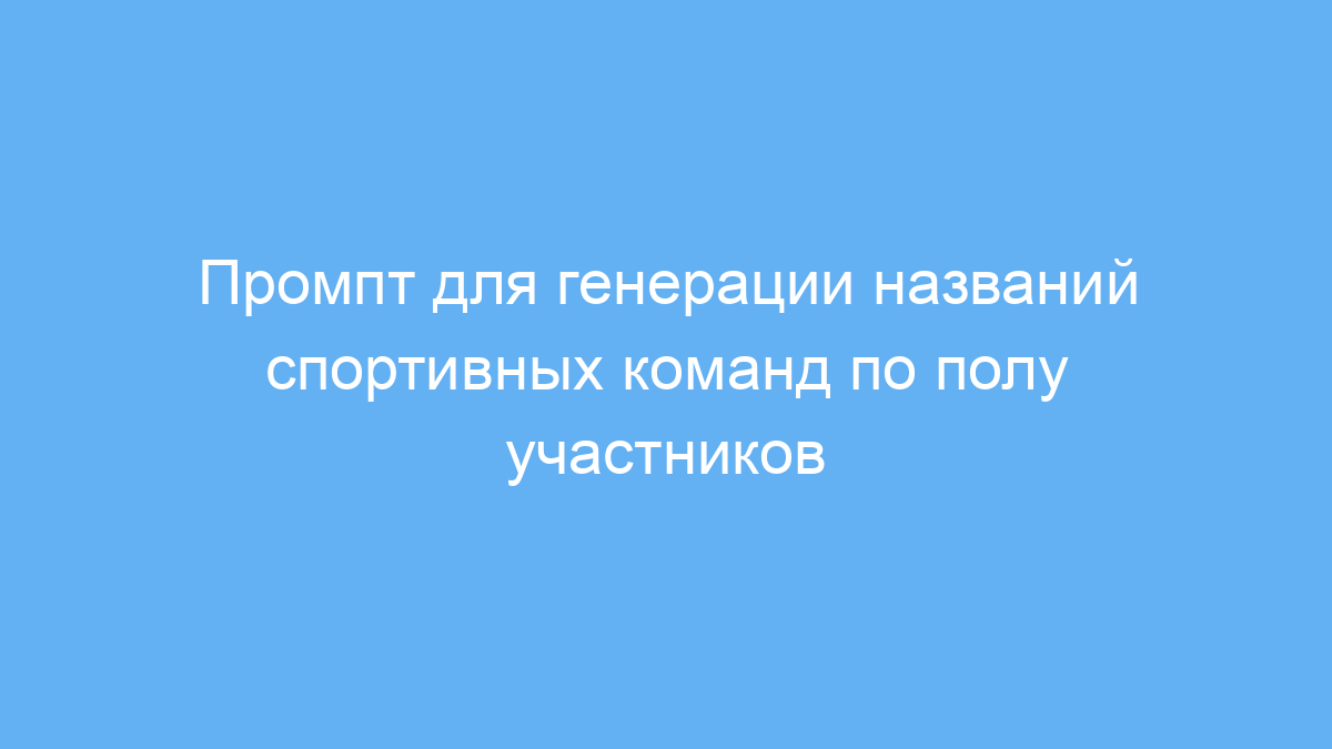 Проблема, которую решает промпт, — поиск вдохновляющих имен, отражающих единство, силу и дух команды. Вместо долгих размышлений и проб, вы получаете готовые варианты, которые можно сразу использовать или доработать.