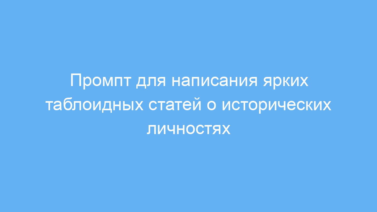 Этот промпт значительно упрощает создание оригинального и яркого контента в таблоидном стиле об известных исторических личностях. Он превращает сухие факты в интересные истории, которые легко читаются и привлекают внимание. Благодаря четкому описанию задачи и стилистике, пользователю не нужно придумывать сценарии самостоятельно — нейросеть сделает всю творческую работу.