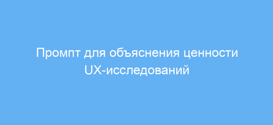 Данный промпт экономит время и силы на формулирование убедительных аргументов в пользу UX-исследований. Он помогает структурировать объяснение и сделать его понятным даже для тех, кто ранее не оценивал важность исследований пользователя.