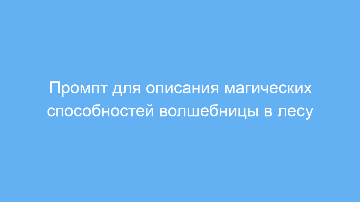 Используя этот промпт, вы легко получите детальный и атмосферный текст, раскрывающий образ волшебницы и её магические действия. Это экономит время на придумывание сценариев, помогает вдохновиться и создать качественный творческий контент с элементами мистики и природы.