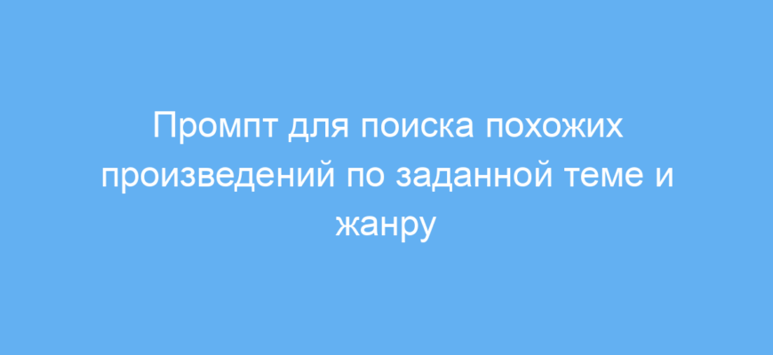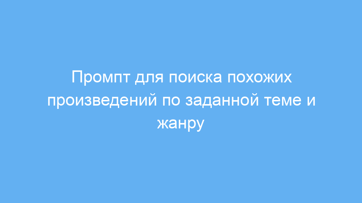 Работает промпт следующим образом: вы указываете жанр, тему и желаемое количество примеров. Затем нейросеть формирует короткое описание исходной темы, находит существующие похожие произведения в том же жанре, описывает каждое и оценивает их по шкале от 1 до 5 звёзд относительно исходного произведения. Результат готов к использованию для обзоров, рекомендаций или исследований.