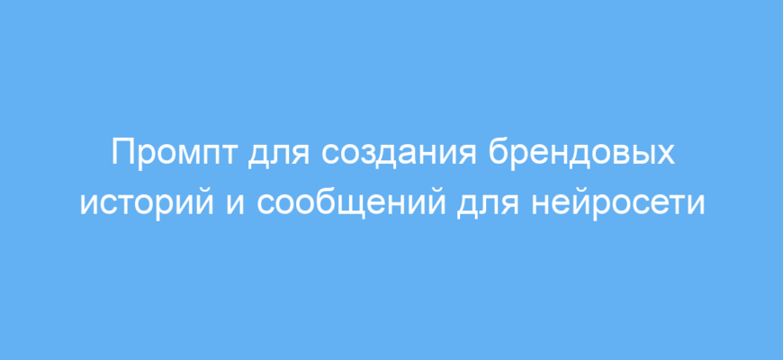 Этот промпт предназначен для специалистов по брендингу, маркетологов, владельцев бизнеса и тех, кто хочет сформулировать уникальные и привлекательные истории для своего бренда. Его используют, чтобы создать понятные сообщения, отражающие ключевые ценности компании и усиливающие позиционирование продукта или услуги на рынке.