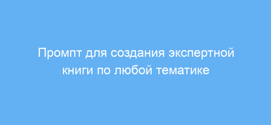 Проблема, которую решает этот промпт, — это трудности с организацией информации и оформлением экспертного контента. Вместо того чтобы самостоятельно искать структуру и идеи, пользователь получает чёткие инструкции, по которым нейросеть сформирует полноценную, информативную книгу.