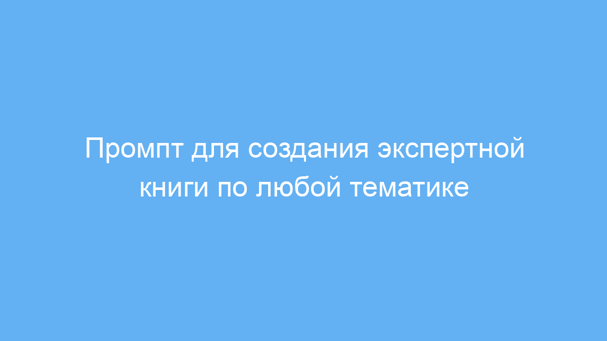 Этот промпт предназначен для тех, кто хочет написать книгу профессионального уровня на любую тему. Он идеально подходит авторам, контент-мейкерам и копирайтерам, которые нуждаются в структурированной, привлекательной и качественной книге без долгих размышлений о формате и построении.