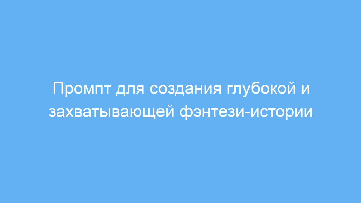 Использование этого промпта существенно облегчает процесс создания насыщенной и глубокой фэнтези-истории. Вы получаете не просто сюжет, а живую, дышащую картину мира с ярко выраженными персонажами и логичными переходами. Это сэкономит время и повысит качество текста, особенно если вы хотите избегать шаблонных и поверхностных описаний.