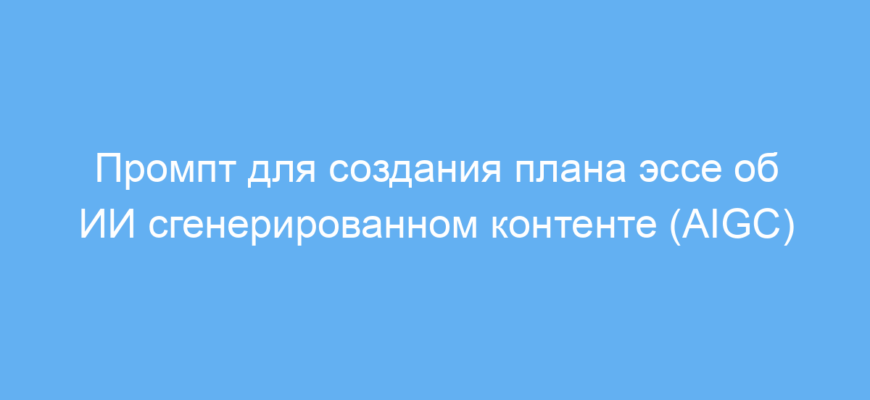 Вариант 1: План для студента, пишущего эссе по курсу «Будущее цифровых технологий». Этот промпт позволяет получить понятную структуру эссе с разделением по ключевым аспектам влияния AIGC.