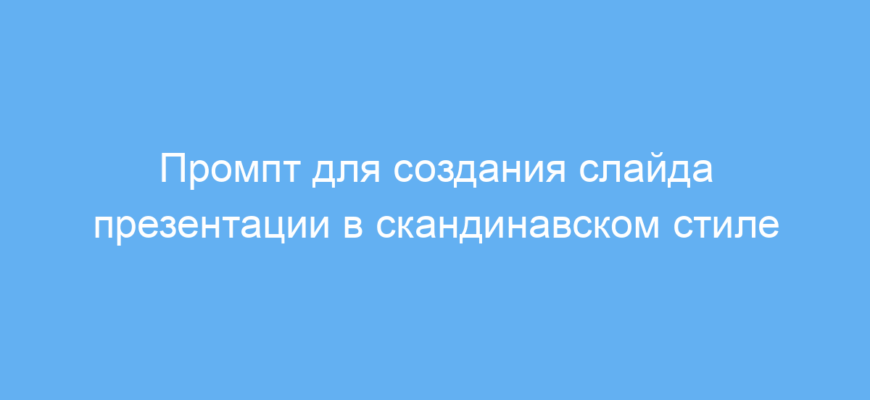 Использование данного промпта позволяет экономить время на дизайне презентаций, создавая слайды в стильном и популярном скандинавском оформлении. Это удобно для людей без опыта в графическом дизайне или для тех, кому нужно быстро получить качественный визуал под конкретный текст.