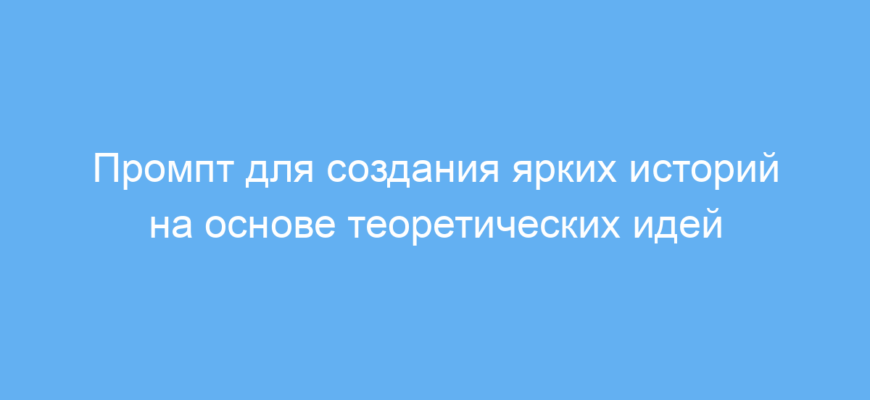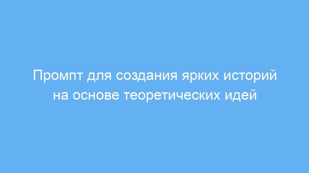 Этот промпт предназначен для тех, кто хочет превратить абстрактные теоретические идеи в живые и запоминающиеся рассказы. Его смогут использовать писатели, преподаватели, студенты, контент-мейкеры и все, кому важно подавать сложные концепции в интересной форме. Промпт помогает решить проблему сухой подачи материала, делая идеи более доступными и эмоционально вовлекающими.
