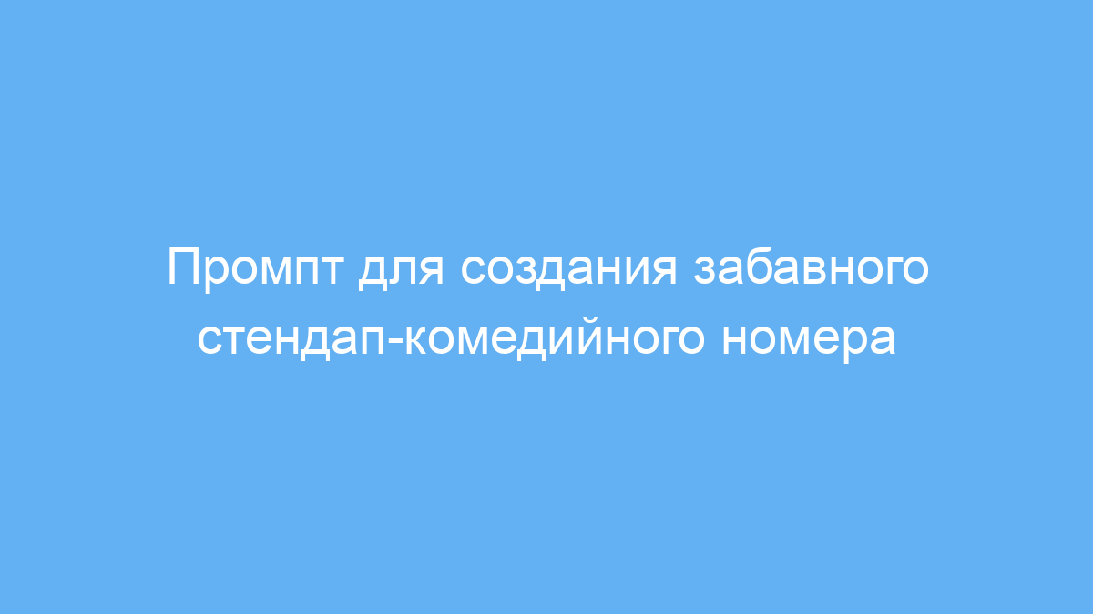 Этот промпт предназначен для тех, кто хочет получить смешной и живой стендап-комедийный текст. Если вы комик, ведущий мероприятий или человек, которому нужен лёгкий и остроумный материал, этот промпт поможет быстро сгенерировать шутки и интересные наблюдения о жизни. Он решает проблему нехватки свежих идей и помогает экономить время на подготовку выступлений.