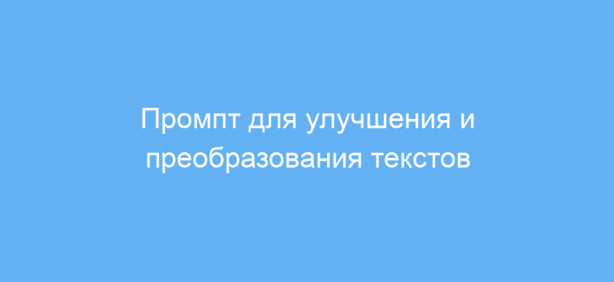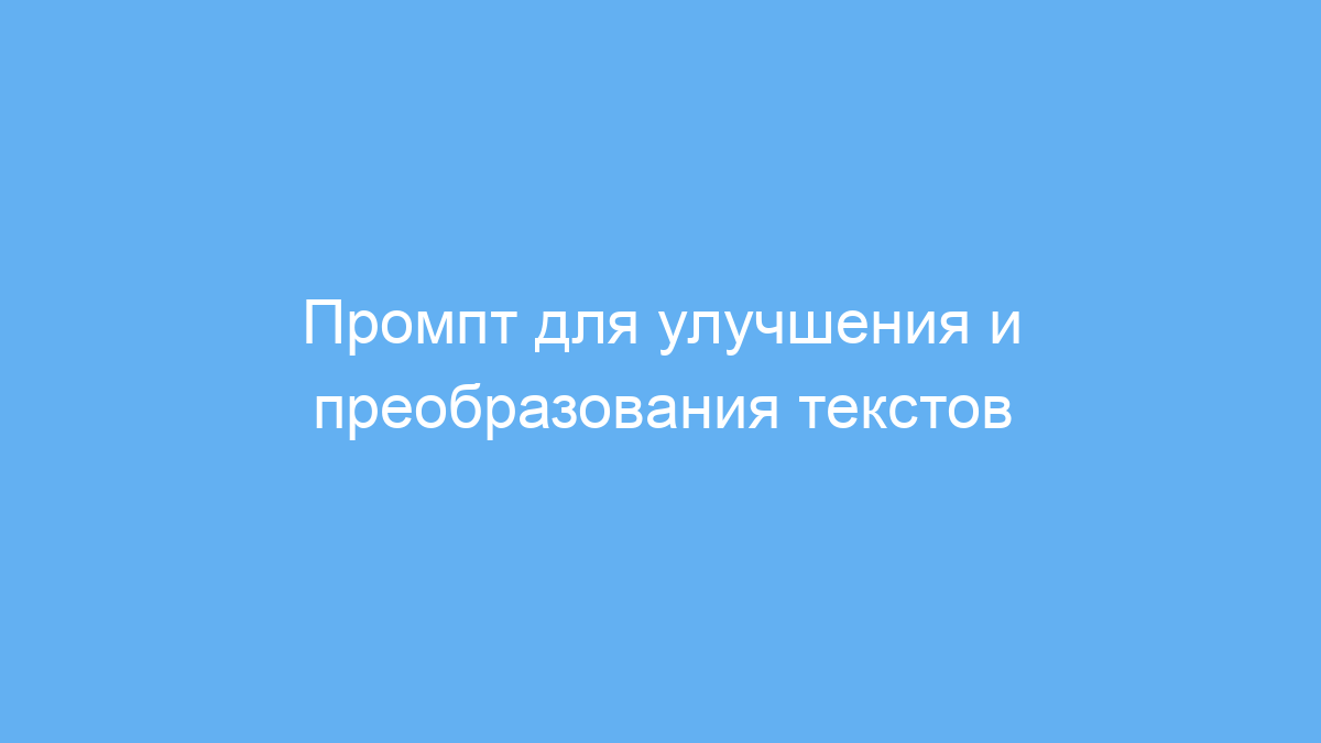 Этот промпт экономит ваше время и силы, помогая быстро улучшить любой текст. Он делает сложные или неаккуратно написанные материалы более читаемыми и привлекательными для читателей. Независимо от задачи, он станет надежным помощником при подготовке текстов для работы, учебы и творчества.