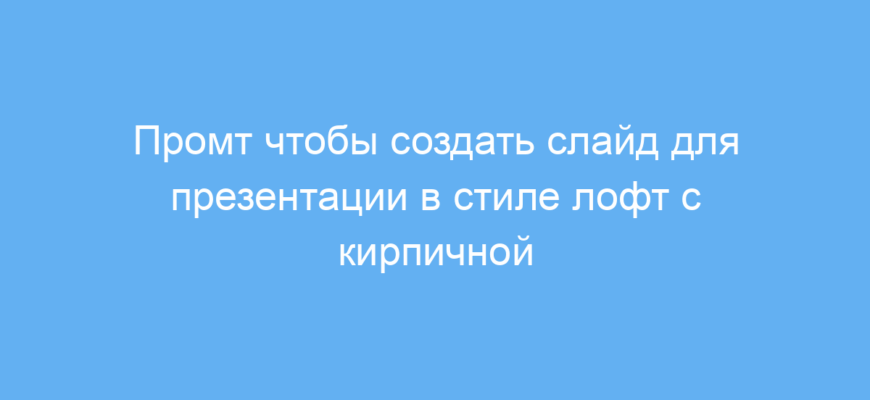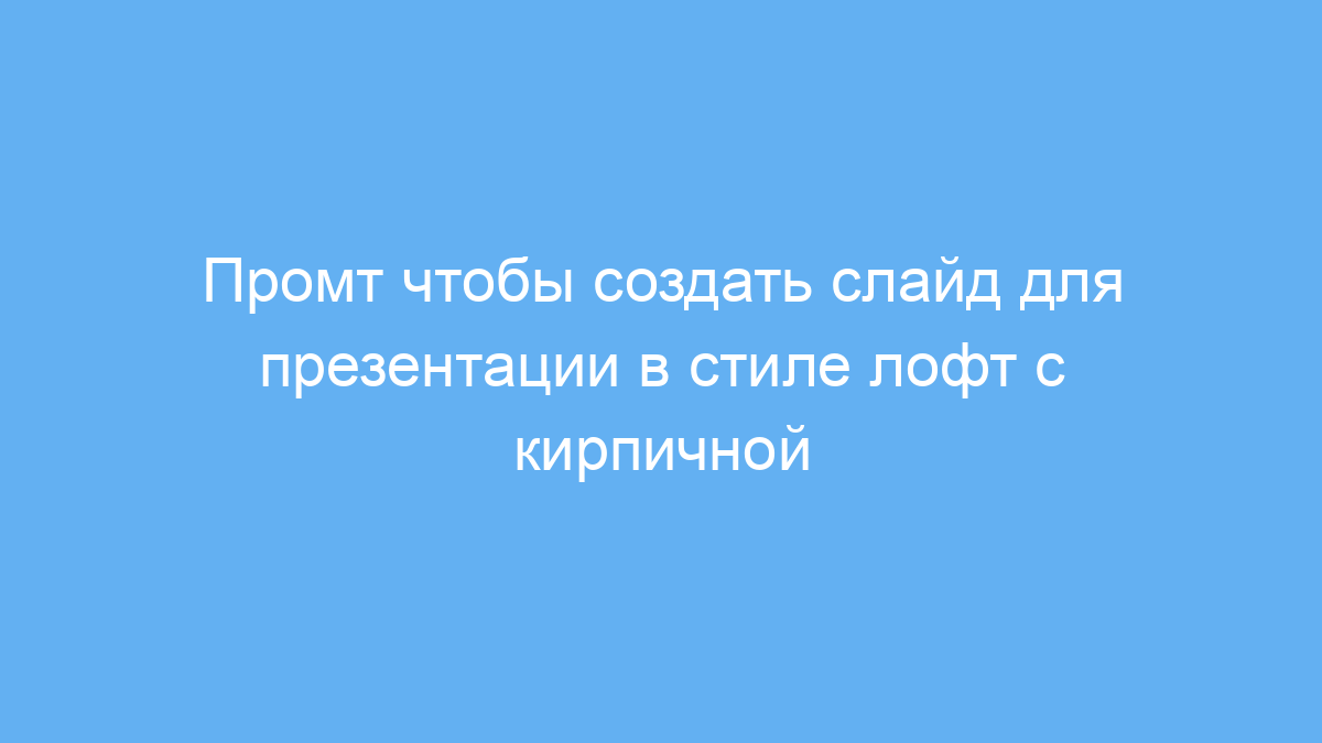 Принцип работы прост: вы указываете ключевой текст, который должен выделяться на слайде, а нейросеть создает дизайн с акцентом на этот текст. Стиль «лофт» с теплым освещением и кирпичной текстурой добавляет слайду креативности и глубины, выделяя его на фоне обычных шаблонов.